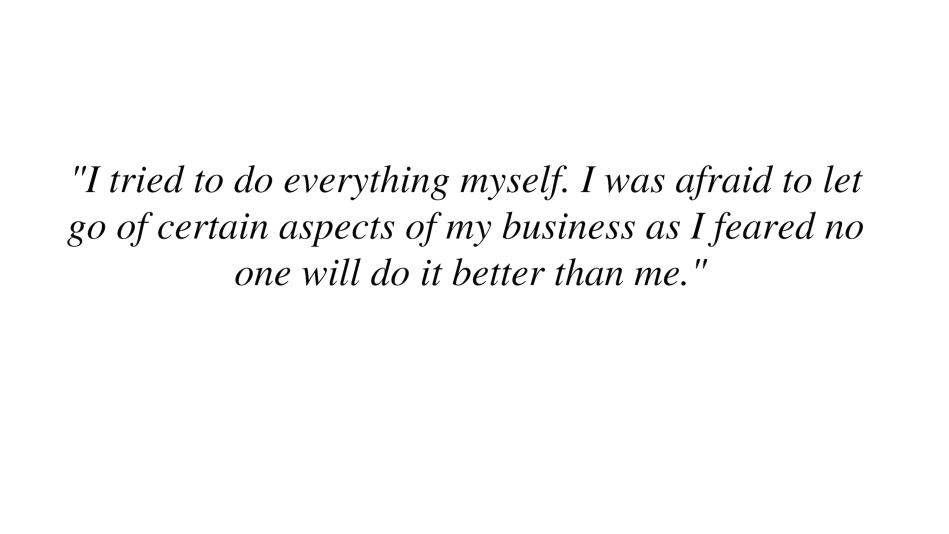 As most new business owners, I tried to do everything myself. I was afraid to let go of certain aspects of my business as I feared no one will do it better than me. If you have to get it done right do it yourself, right…? WRONG!! My level of service began to drop. How could I ask my clients to rely on me and ‘leave the hassle to us’ when I could not let go myself?
