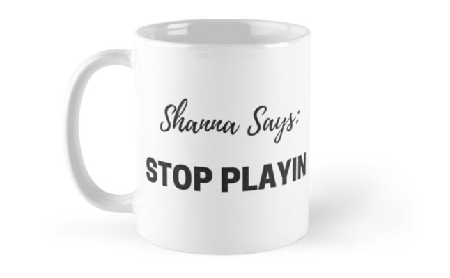 Mugs SHANNASQUAD COLLECTION INTERVIEWS WITH ASHANNA $18.20USDREADY FOR THE LIVE With Shanna $18.20 USDSHANNA SQUAD $18.20 USD SHOP MUGS GET YOUR LIFE COLLECTION STOP PLAYIN $18.20USDShanna Says STOP PLAYIN $18.20 USDBEAT FREE ZONE $18.20USD SHOP MUGS